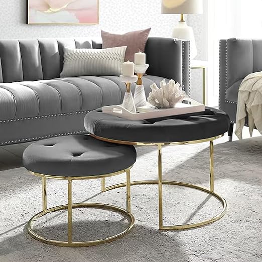 Adore DARK DREAMS Nesting Table [ set of 2][Engineered Wood, Wrought Iron]