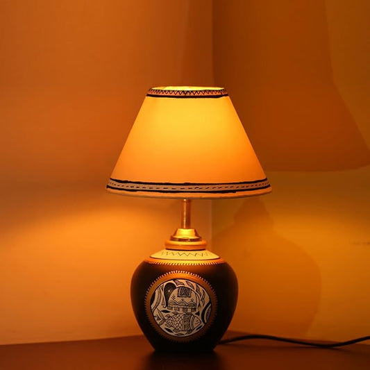 Adore Warli Hand-Painted' Home Decorative Terracotta Bedside Table Lamp