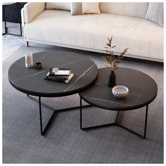 Adore drawer nesting table [set of 2] [WROUGHT IRON , LAMINATED MDF]