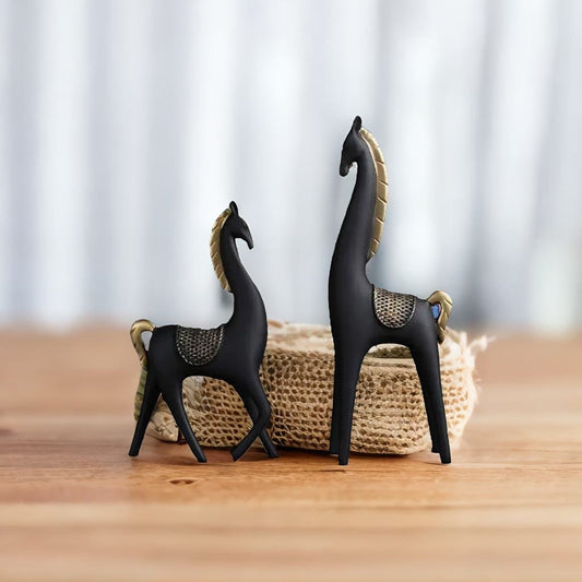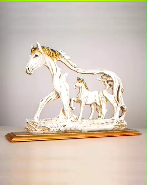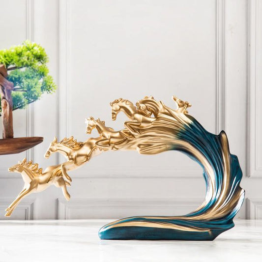 Adore & Décor Running Horses Sculpture Showpiece – Golden Horse Figurine with Teal Wave Base