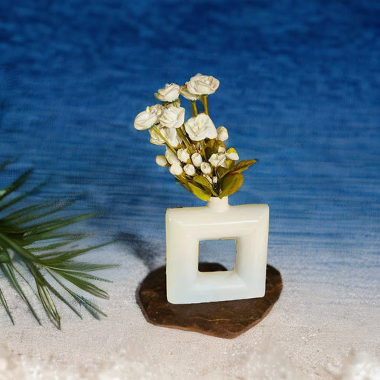 Square Hollow Ceramic Vase [SINGLE, CREME].