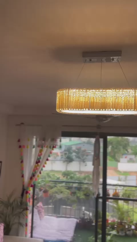 The Modern Oval Crystal Chandelier is a contemporary lighting fixture that combines a sleek oval shape with the elegance of crystal elements.