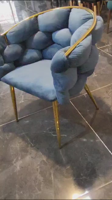 The velvet back and arms are stitched into hexagonal geometric cushions to comfort you and create a super unique and interesting look.